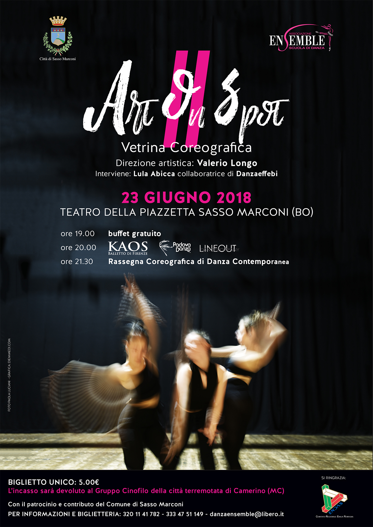 Un mio scatto scelto per la locandina di Art On Spot – vetrina coreografica di danza che si terrà il 23 giugno 2018 al Teatro all’aperto di Sasso Marconi. La grafica è curata da Simone Lazzaroni-Diemmedi.com