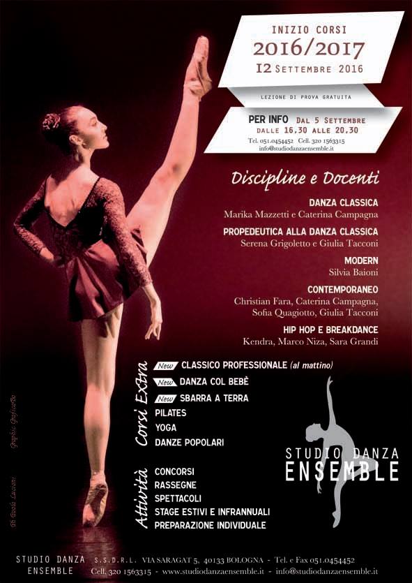 Ringrazio Danza Ensemble di Sasso Marconi (www.danzaensemble.it), Studio Danza Ensemble di Casalecchio (www.studiodanzaensemble.it) e A Passo di Danza di Calderino (www.apassodidanza.org) per avermi scelta e per la fiducia che ripongono ogni anno in me.