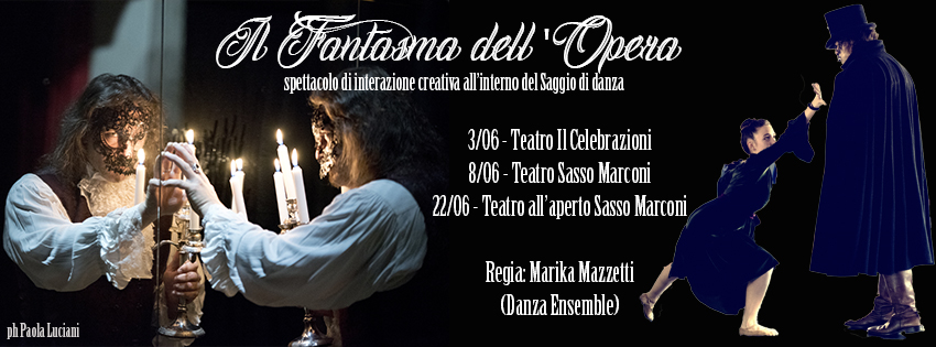 Verrà messo in scena il Fantasma dell’Opera, spettacolo di interazione creativa all’interno del saggio della scuola di danza “Danza Ensemble” e “Studio Danza Ensemble” dove anche quest’anno parteciperò con le foto di scena e i video di IntroVedo di Giuliano Lugli.